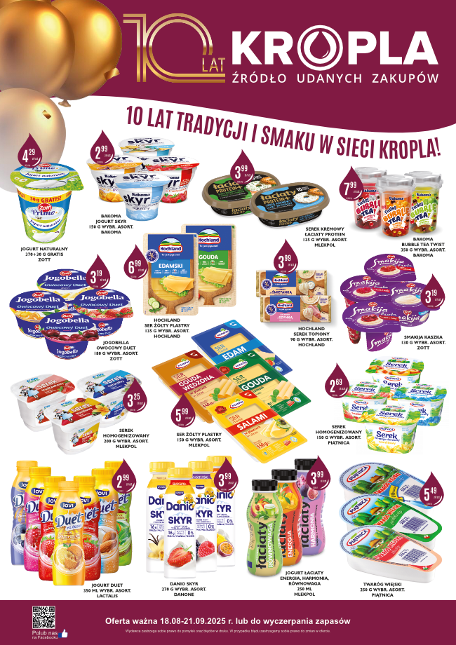 Świętujemy 10 lat tradycji i dziś zapraszamy Was do odkrycia naszych wyjątkowych ofert nabiałowych! Jogurty, sery – wszystko świeże, pyszne i w jubileuszowych cenach 🥳
