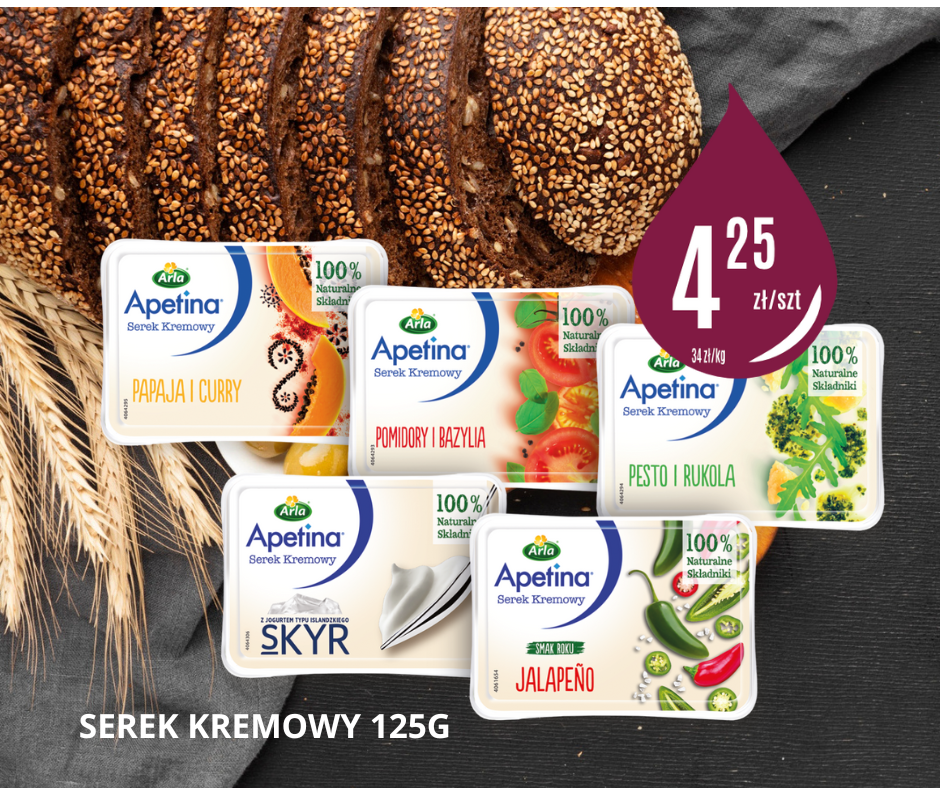 Kremowy, delikatny serek Apetina w różnych smakach – z pesto i rukola, pomidory i bazylia, skyr lub papaya z curry – idealnie komponuje się ze świeżym, chrupiącym pieczywem. ![]()