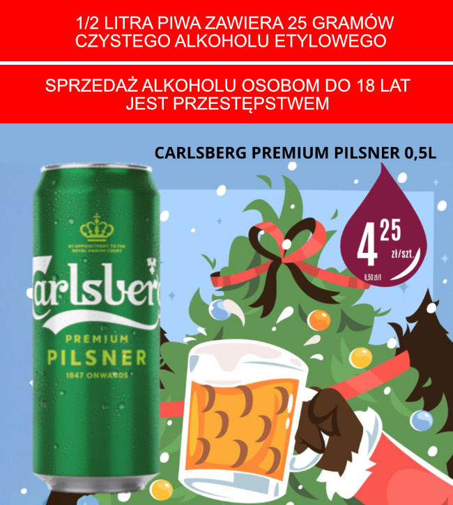 2025-12-272025-12-22Promocje Carlsberg Pils Carlsberg Premium Pilsner to klasyczny pilsner: jasny, klarowny, w swoim stylu. Czasem prostota mówi najwięcej. 🍺