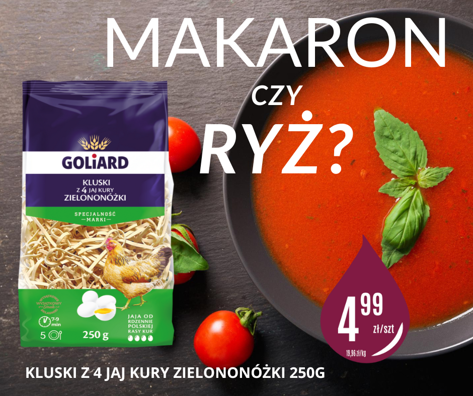 2025-09-192025-09-12Promocje Goliard kluseczki 🍅🥣 Pomidorowa – klasyk nad klasyki! Ryż czy makaron? 🤔 My wybieramy kluski z 4 jaj od kury zielononóżki Goliard 🥚✨ – bo najlepsze smaki zasługują na najlepsze dodatki. A Ty, z czym jesz swoją pomidorową? 👇 #kroplapolskidetal #pomidorowa #goliard