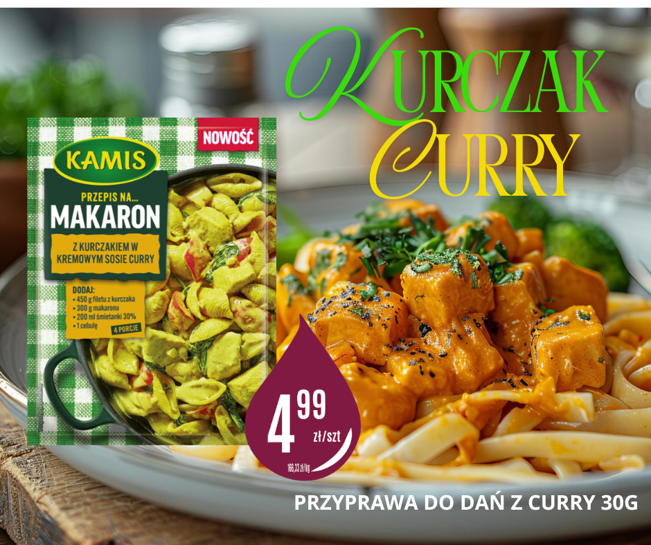 2025-09-162025-09-12Promocje Kamis Przepis na Makaron z kurczakiem w sosie curry to szybki, aromatyczny obiad w 15 minut! Pikantny, kremowy i pełen smaku dzięki przyprawom Kamis. #kamis#kurczakcurry#kroplapolskidetal