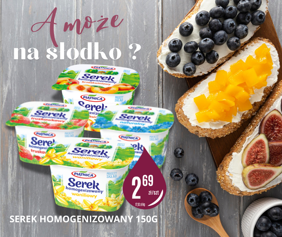 2025-09-042025-09-01Promocje Piątnica 🍓🥪 A może tak serek homogenizowany na kanapce?Na słodko, z ulubionymi owocami – truskawkami, malinami czy bananem. Chrupiąca kanapka + kremowy serek + owocowa eksplozja smaku = idealny start dnia albo słodka przekąska!