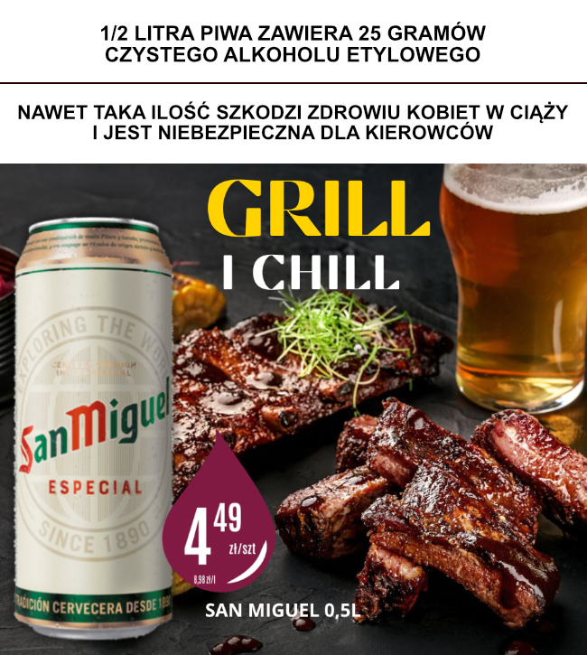 Co najlepiej pasuje do soczystych dań z grilla? Oczywiście dobrze schłodzone San Miguel – lekkość, orzeźwienie i klimat, który sprawia, że każda chwila smakuje lepiej.