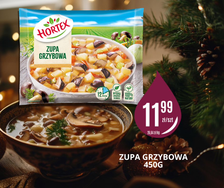 Kiedy czas nagli, a aromat wigilijnego stołu jest najważniejszy, mrożona zupa grzybowa Hortex przychodzi z pomocą.